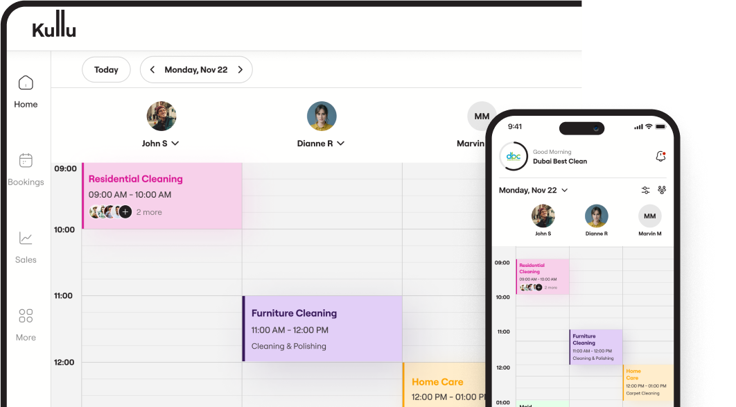 Whether you're at home or on the go, Kullu’s remote management features let you oversee your operations, track appointments, and monitor performance anytime, anywhere.